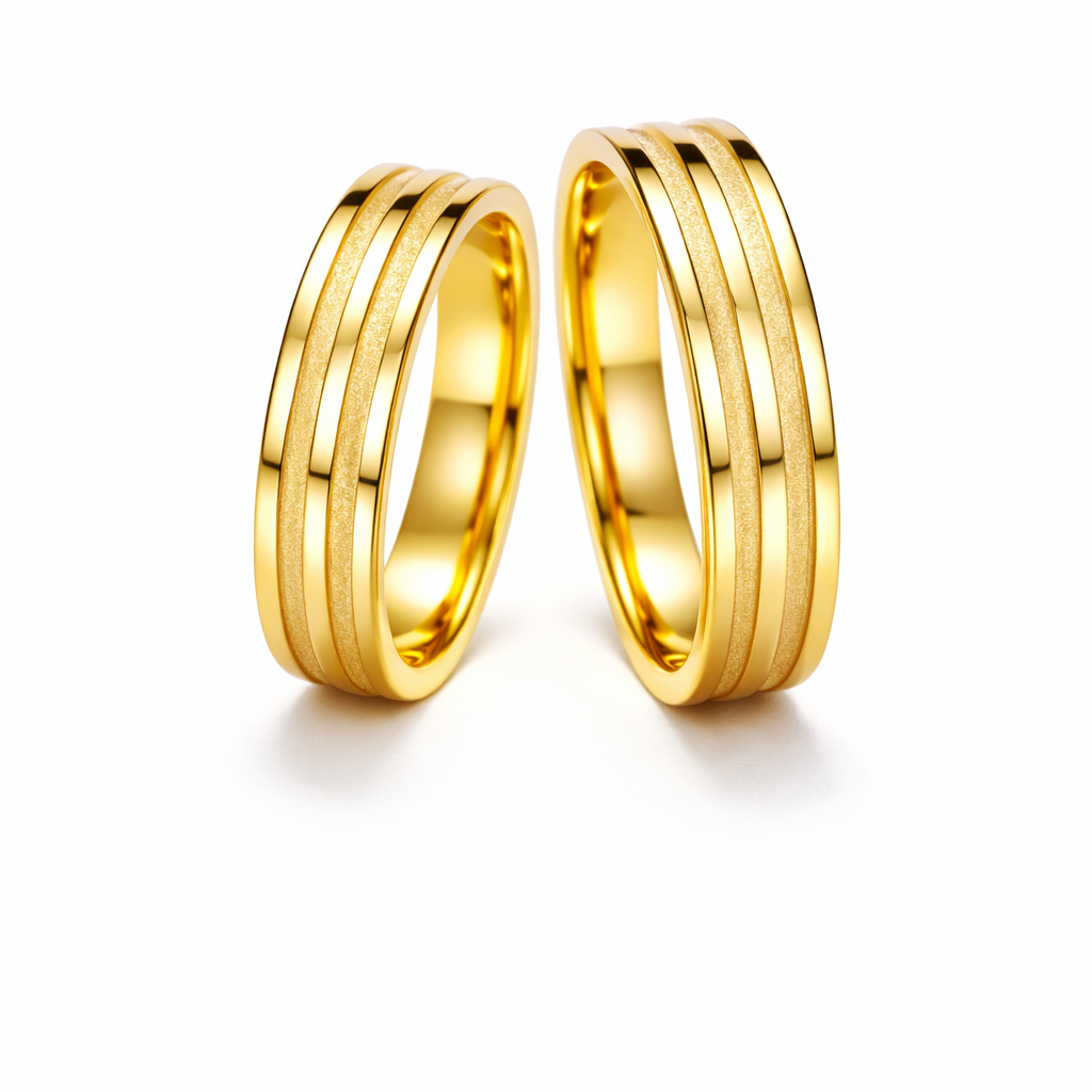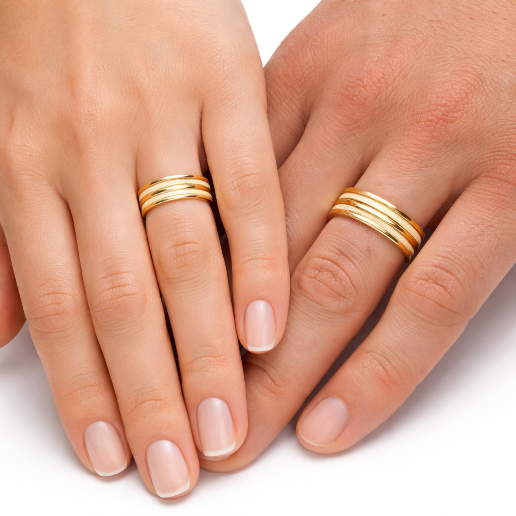 Aliança Anatômica com Frisos 5 mm em Ouro 10K – Par